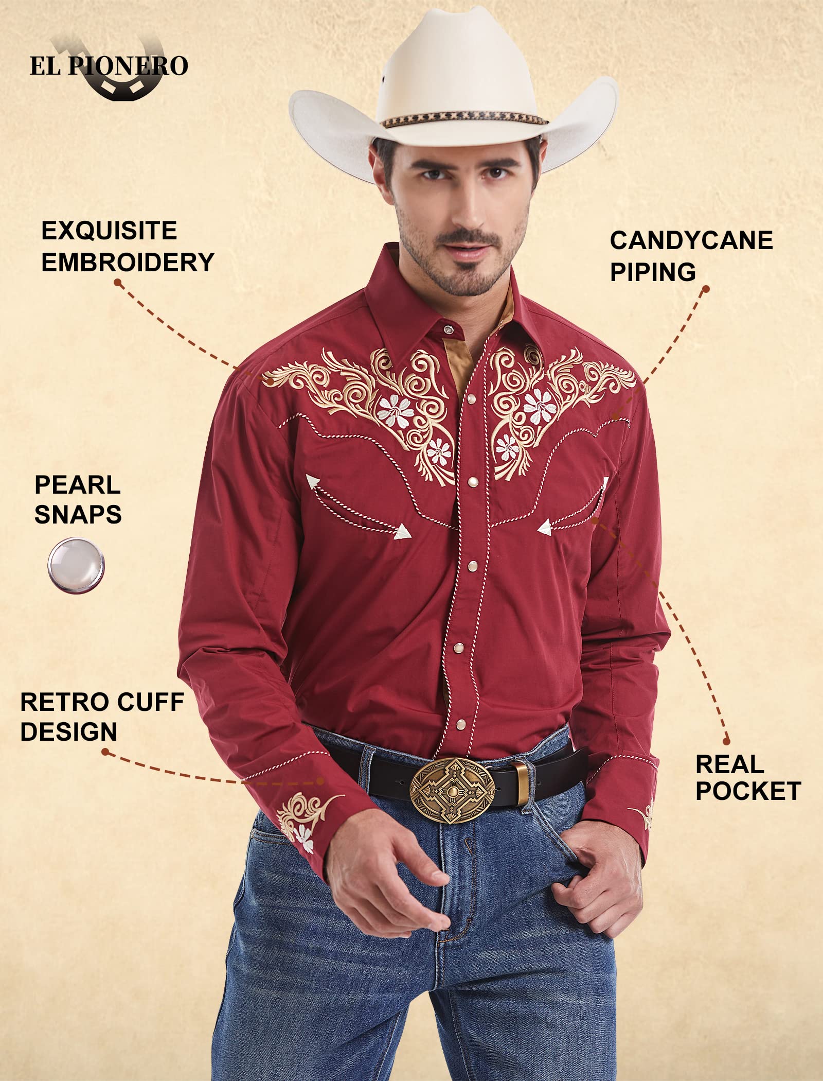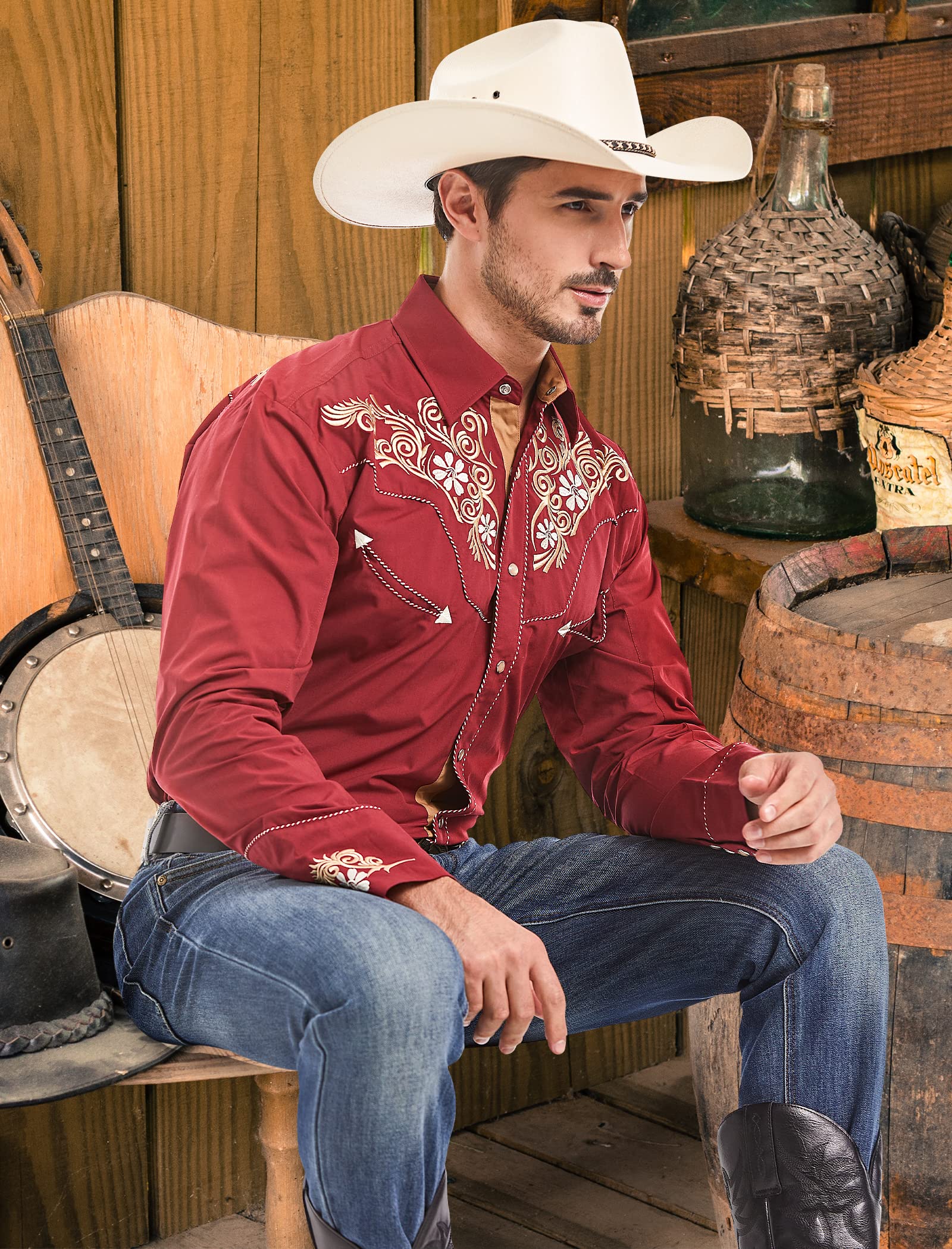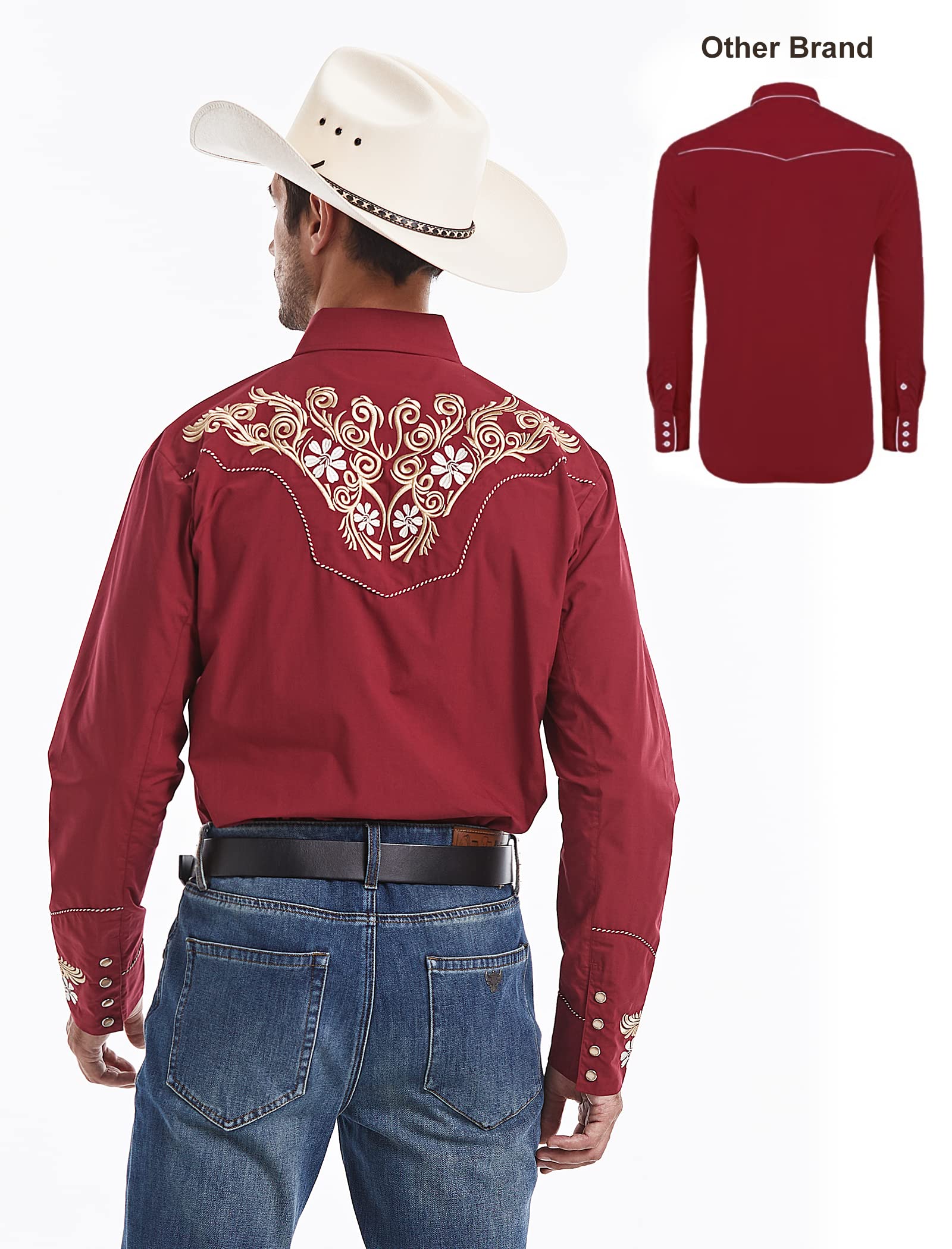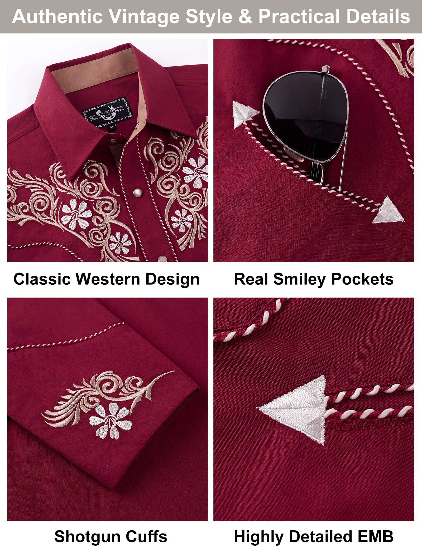 Men's Western Shirt Long Sleeve Embroidered Cowboy Casual Snap Button Shirt
