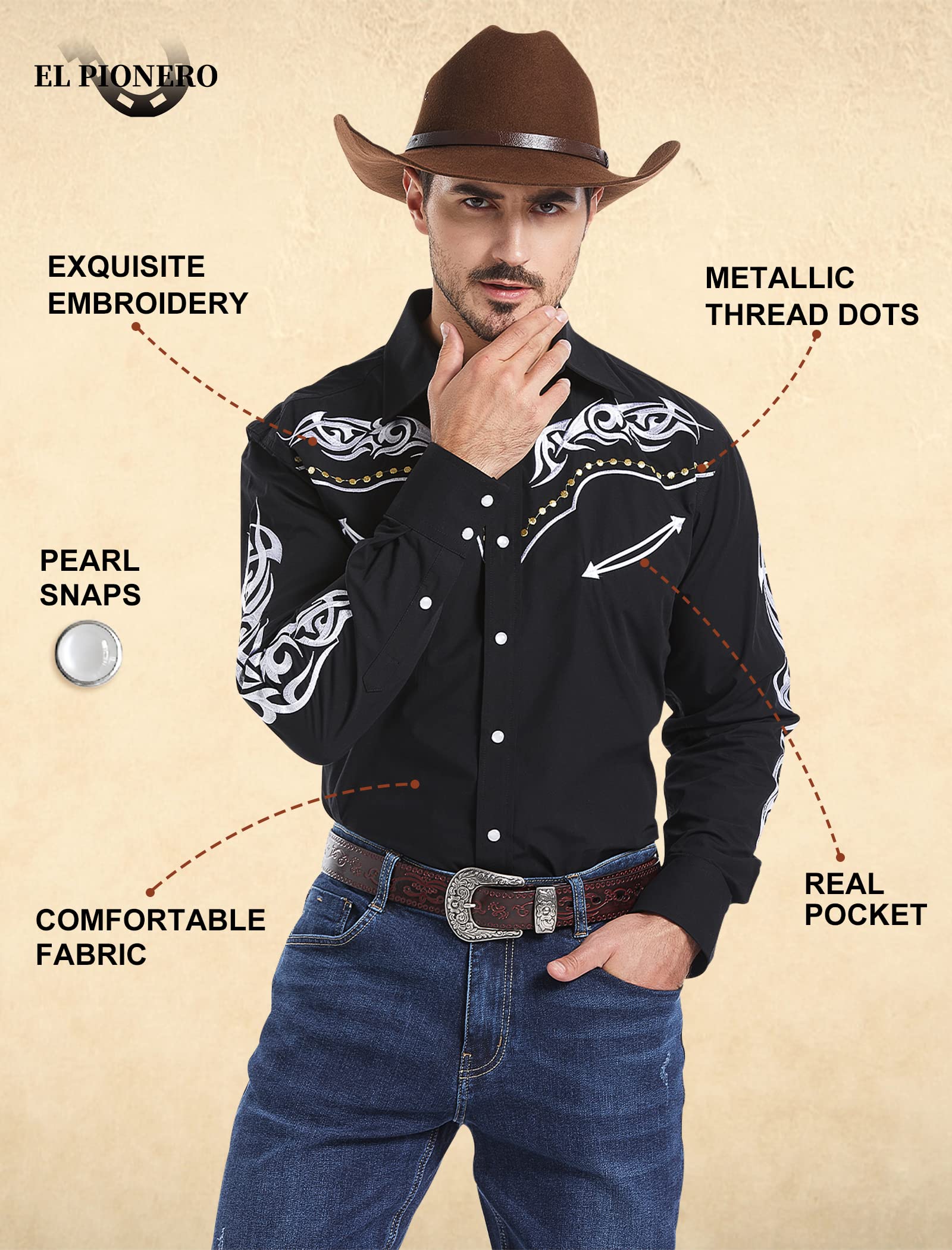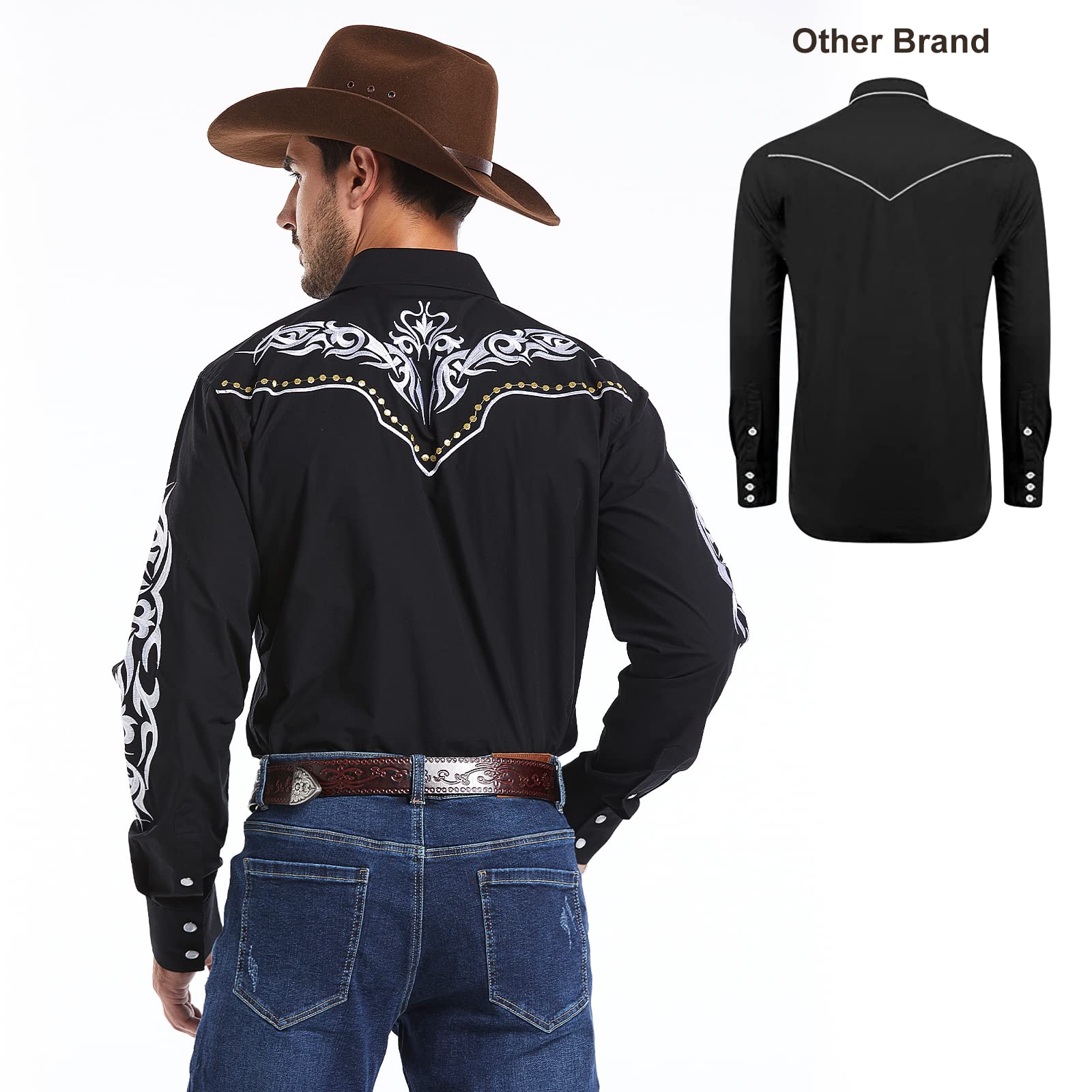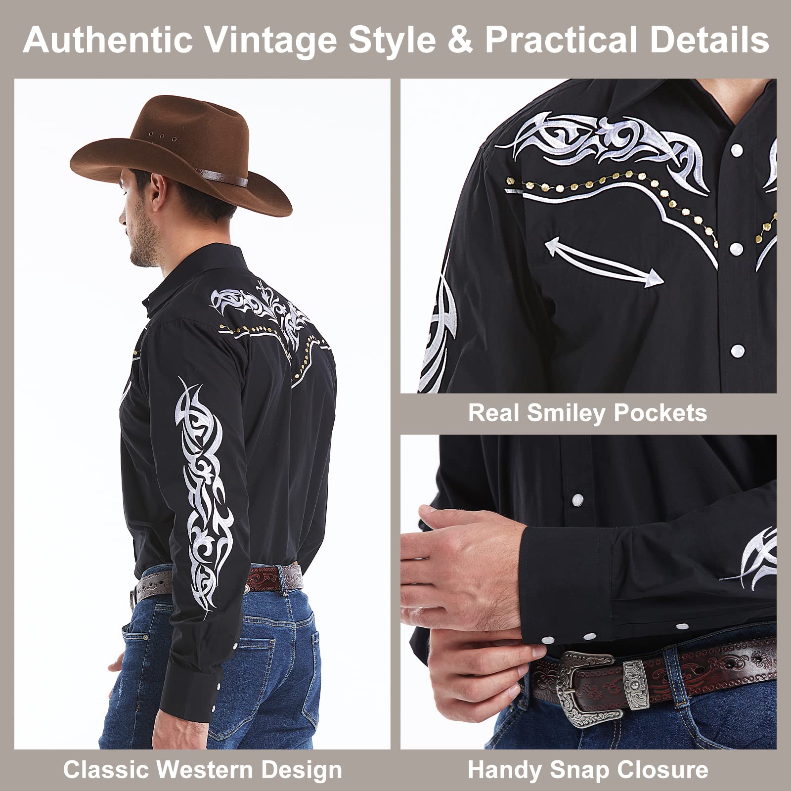 Men's Western Shirt Long Sleeve Embroidered Cowboy Casual Snap Button Shirt